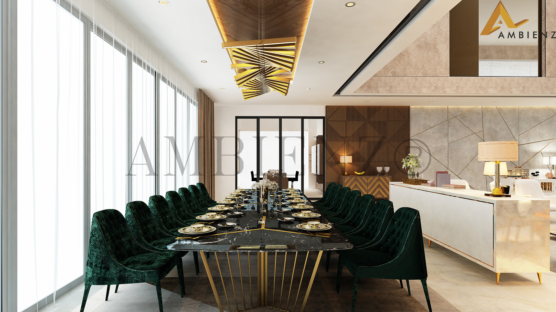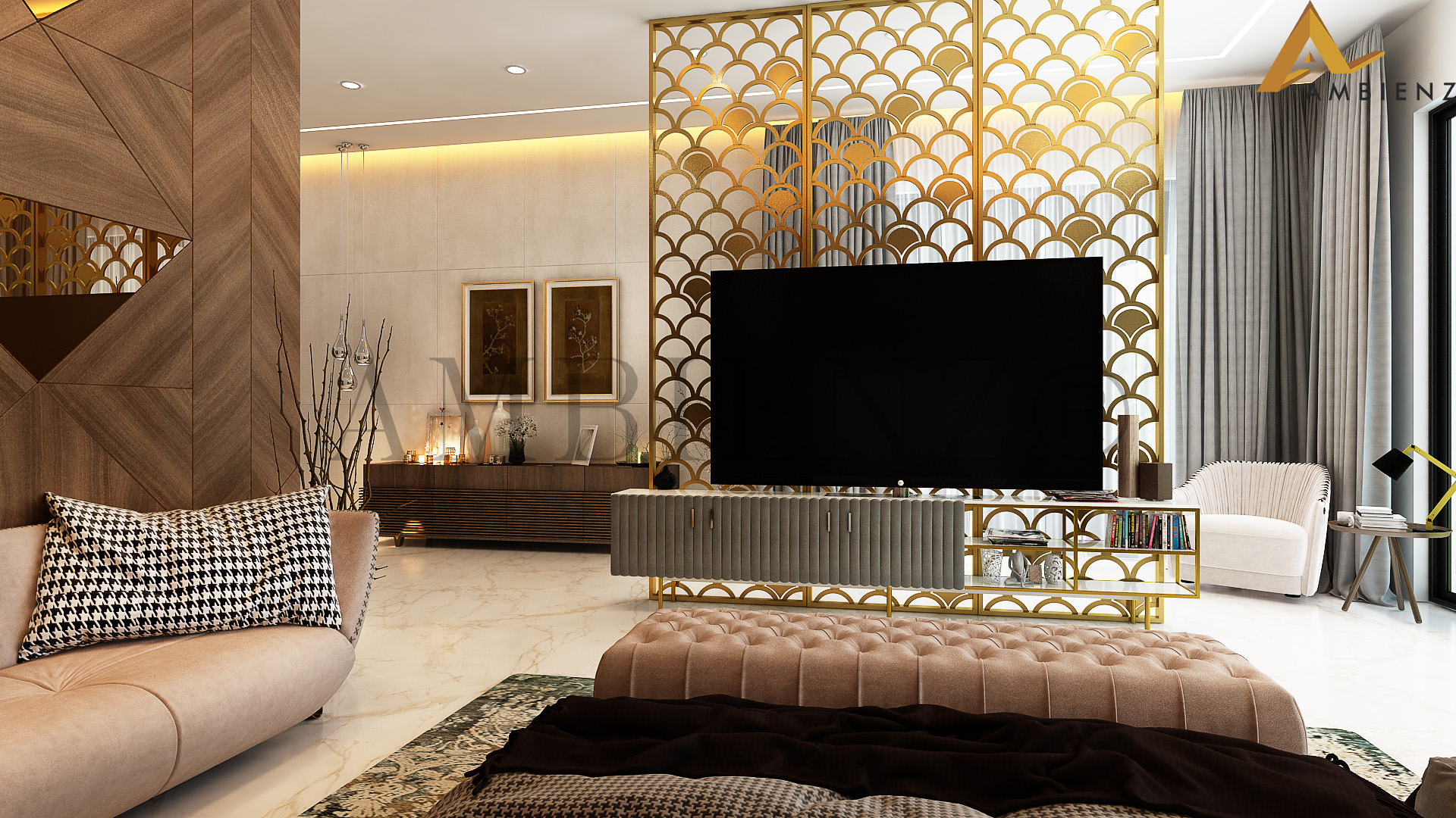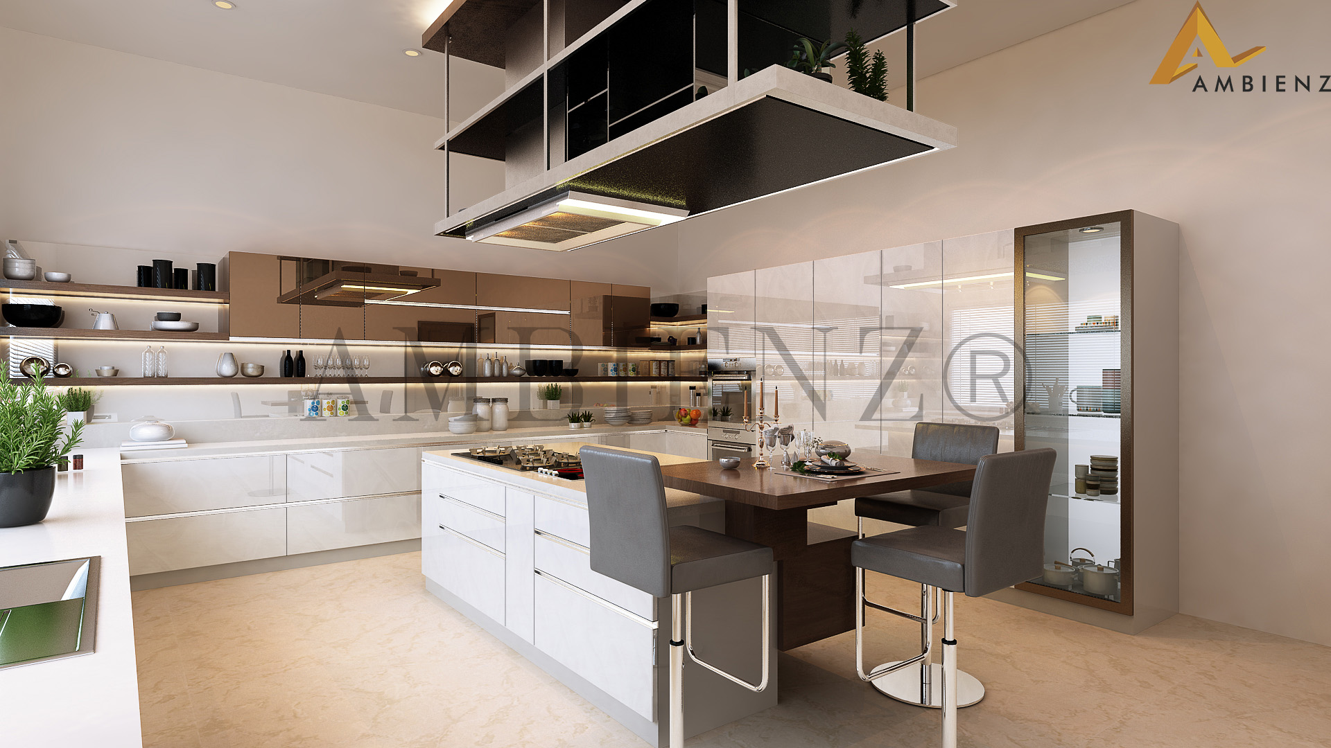 Ambienz team of designers came up with solutions to suit their fast-paced lifestyle including a pull-down dining table and incorporated existing furniture in their home into the interior design plan.