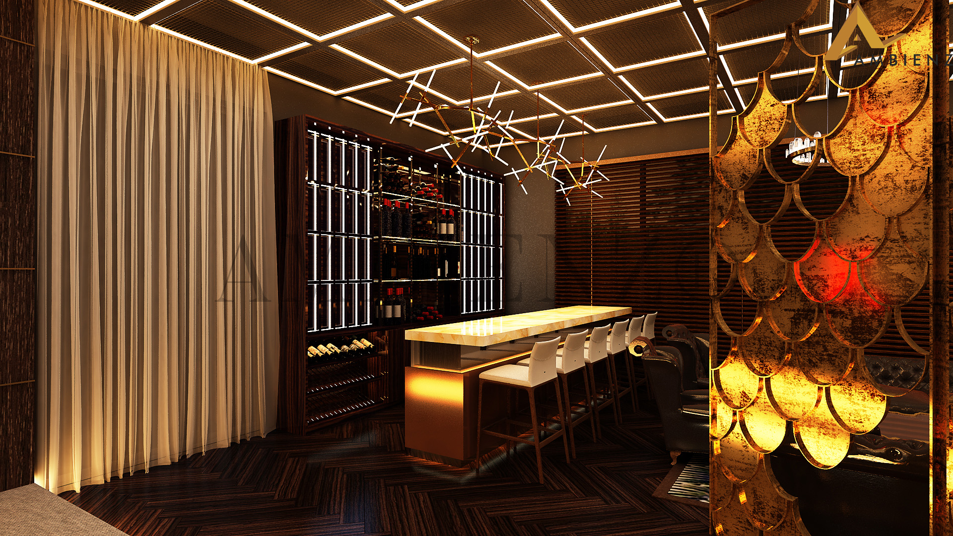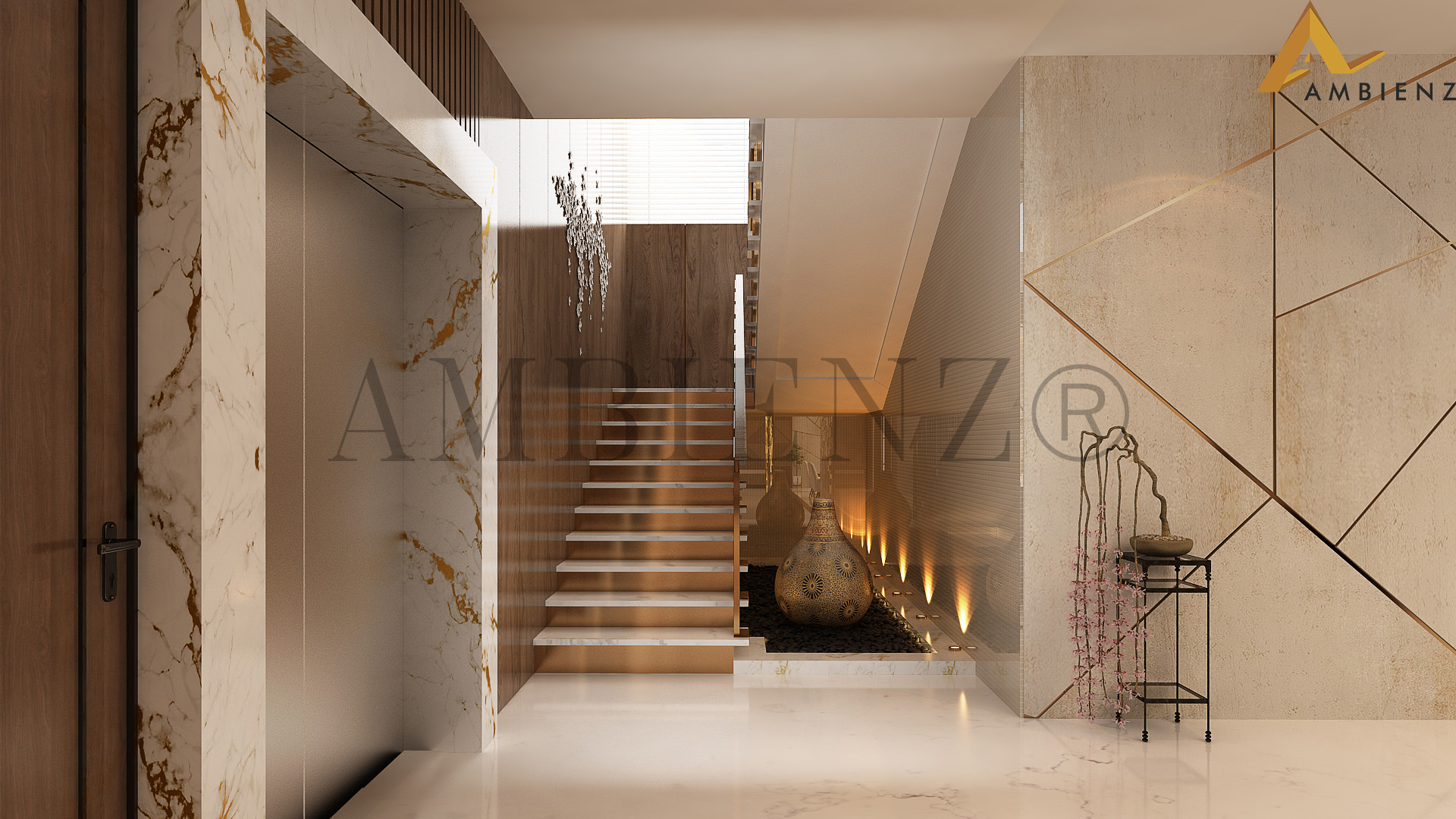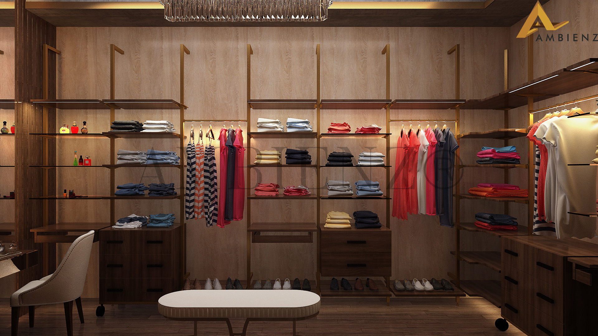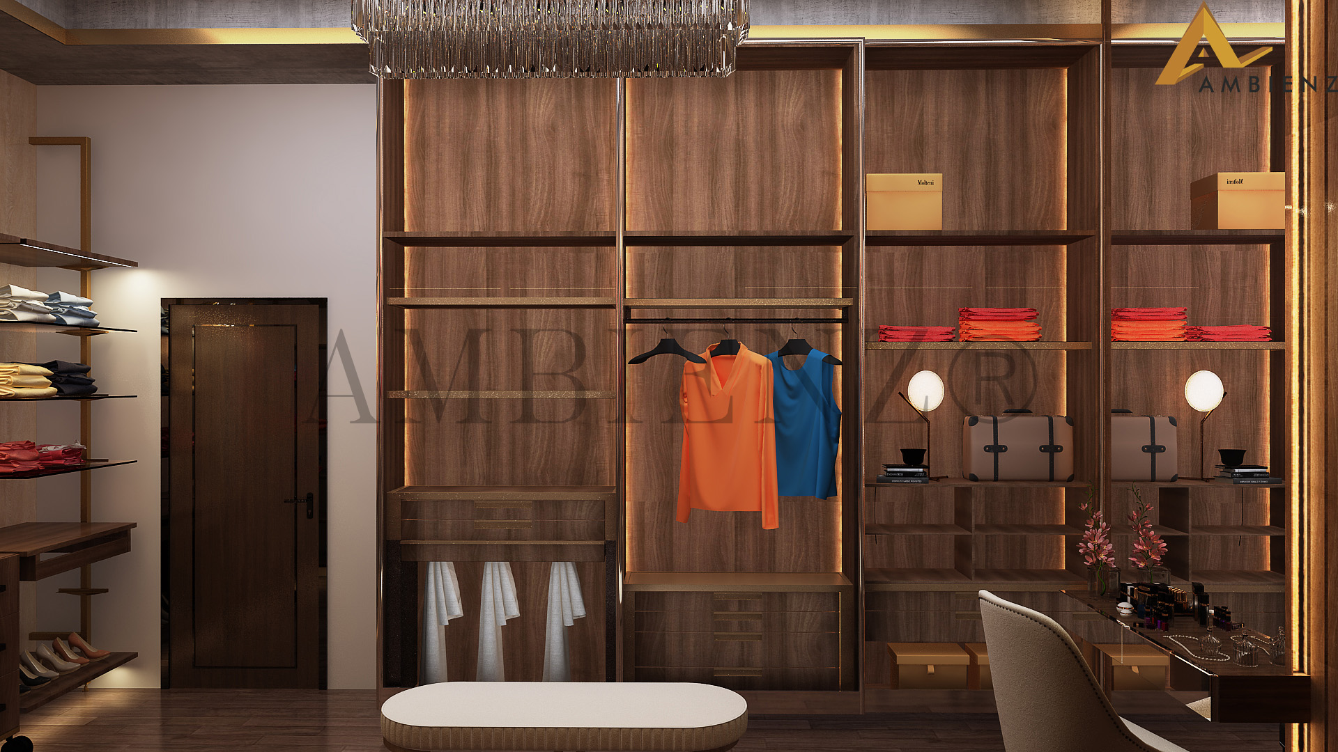 Ambienz team of designers came up with solutions to suit their fast-paced lifestyle including a pull-down dining table and incorporated existing furniture in their home into the interior design plan.